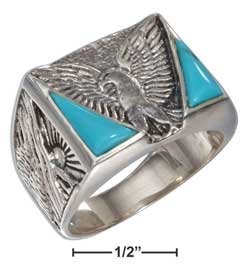 Sterling Silver Mens Bezel Set Turquoise Ring With Tapered Floral Ban - Size 7.0 - in Sterling Silver - JewelryWeb Style: ISR22374SSH7 - FREE gift-ready jewelry box